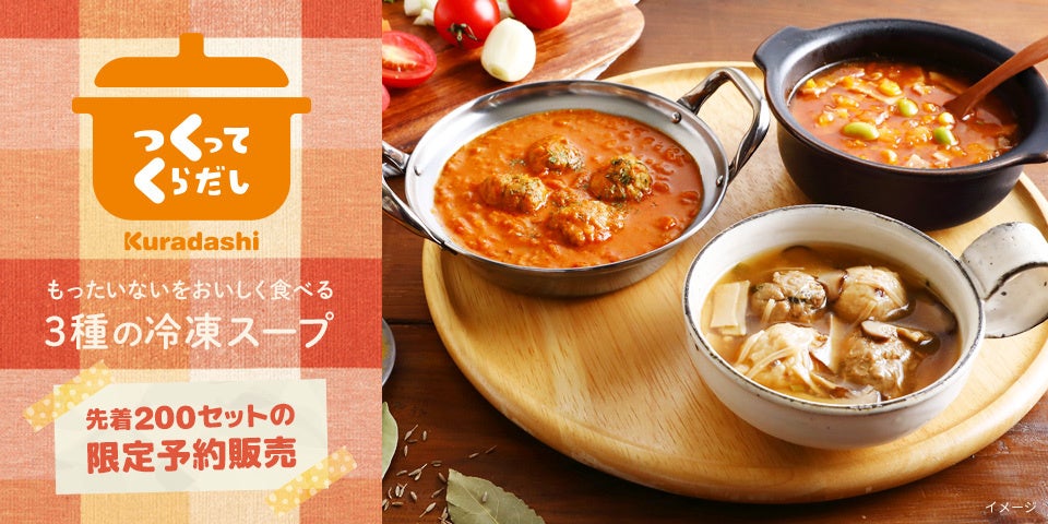 ソーシャルグッドマーケット「Kuradashi」を運営する株式会社クラダシ様と協業・開発した、もったいない食材を活用した3種の冷凍スープを11月30日より「Kuradashi」にて予約販売いたしました