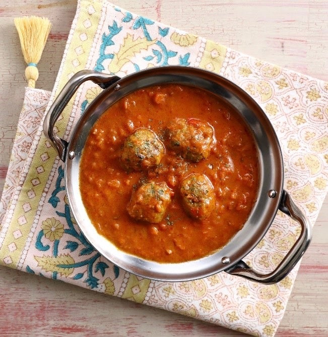 インドカレーがベースのスパイシーなスープ。具材には、ペースト状の野菜と旨味たっぷりの青魚「コノシロ」とスパイスで作ったコノシロボール(つみれ)を加えました。栄養満点で食べ応えのあるカレースープです。ご飯と一緒に味わうのもおすすめです。